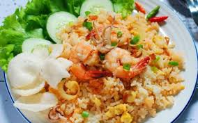 – Nasi goreng seafood ala restoran sudah siap disajikan bersama pelengkapnya.
